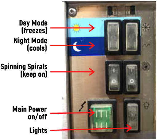 - Once mix is low (below the silver tube) Add more mix, or switch onto night mode to stop the machine over freezing